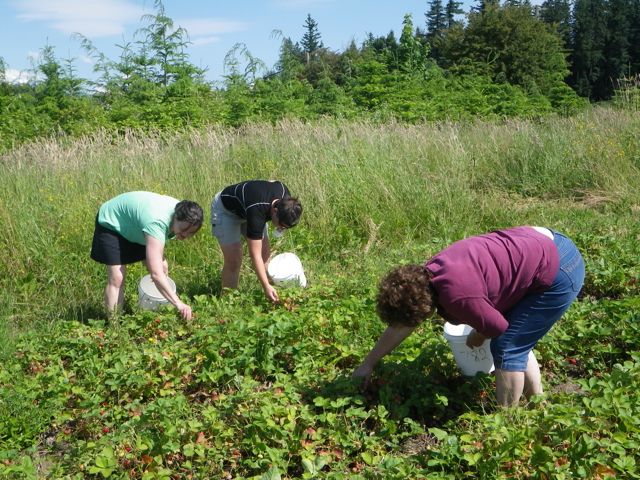 On Day 3, we went through all of our stuff, and with Ari’s keen sense of the necessary (from her experience in hiking the Appalachian Trail and Pacific Crest Trail) mailed 16 pounds home! We picked strawberries in the afternoon with Ari and Molly (her Mom). After picking strawberries, Kristen and I helped with some chores around the house. Molly discovered the female duck had been laying eggs under the duck house and had piled up a collection of rotten, exploding eggs. I helped out by burying the eggs in the yard. Two exploded on me, and by exploded I mean blew like Mt. St. Helens with egg goo and sulfur abound. Kristen helped out by breaking their garage door.