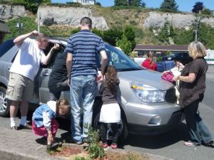 The whole family stands in awe of my Binners Market flag doing its magic in their car.