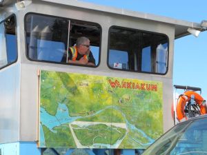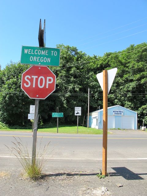Our day started with a 10-minute ferry ride across the Columbia River to Westport, OR. We took this ferry (and this route) for two reasons: to visit our friends in Washington and to avoid the Astoria bridge. This bridge connects Washington and Oregon at the mouth of the Columbia River, is over four miles long, climbs up from both sides, has metal grating and no bike lane. Every cyclist we heard from who has ridden over it says it was the scariest part of their trip. One guy said he just wanted to curl up into a fetal position in the middle. So, we went this way and took the ferry. After that, it was a long climb, lunch with another breve, and a rolly ride into Astoria.
