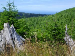 As of today, I can say I have a favorite road on our Pacific Coast bike trip: Whiskey Run Lane, between the towns of Charleston and Bandon, OR. It is a 2.5 mile stretch along a ridge that was perfectly rolly, empty of cars, and lined with trees (except the ones being cut down). Quite lovely.