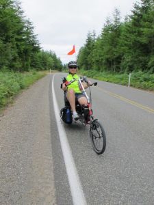 We rode through peaceful neighborhoods. Kristen raced a tractor, and won! We rode the ferry to Port Townsend. Remember my famous Binners Market flag? Well, it got put to good use today. After getting off the ferry, some man came up to us and asked us if our flags came off our bikes. What an odd question. Turns out that he locked his keys in the car and he thought he could unlock it with one of our flags. One flag was too short, but somebody had electrical tape. Two flags didn’t quite cut it. But, two flags with a carbiner taped open to the end were up to the task of pulling the keys out of the ignition! The whole time this was going on, their six or so children were giving advice like: “Next time, don’t lock the keys in the car.” “Leave the widow down more so you can just reach in.” “Bring the keys with you.” Such obvious advice.